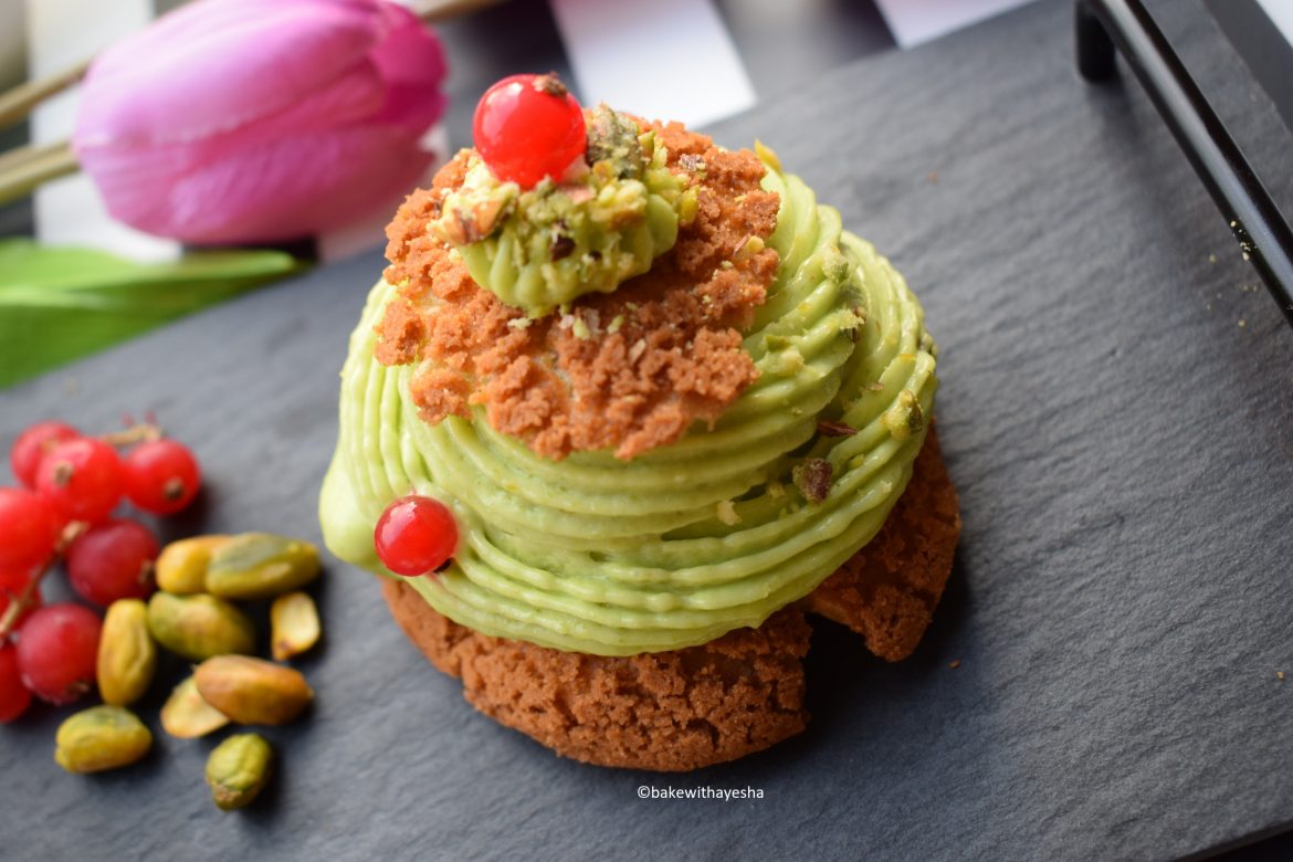 There, your lovely pistachio and raspberry choux craquelin is done! Enjoy!
